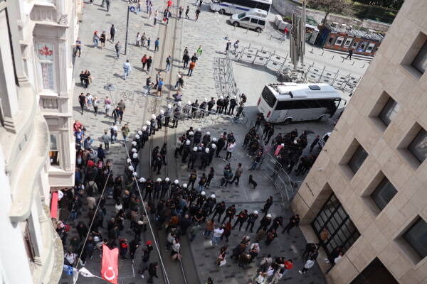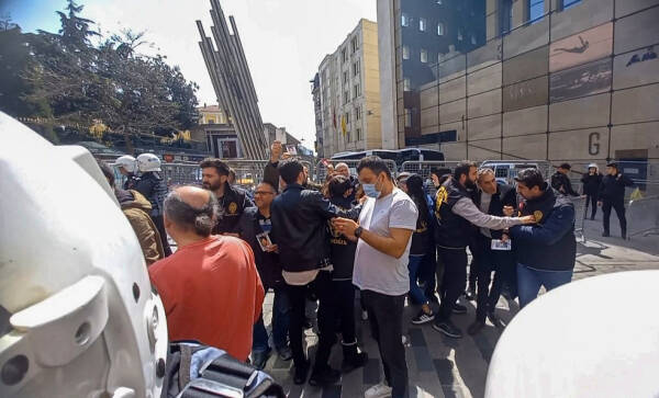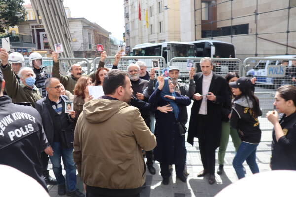 The Chairperson of the Human Rights Association (IHD) Istanbul branch, Gülseren Yoleri, the Media Union President Faruk Eren as well as Hanım Tosun, Hanife Yıldız, Ali Ocak, Besna Tosun, Mikail Kırbayır, Jiyan Tosun, Irfan Bilgin, Hasan Karakoç, Kenan Yıldızerler and Zekine Türkeri were taken away by the police. In the prison van, the detainees held pictures of their missing relatives on the windows and made the victory sign. HDP MP Musa Piroğlu came to the square after the police raid and protested against the detentions.