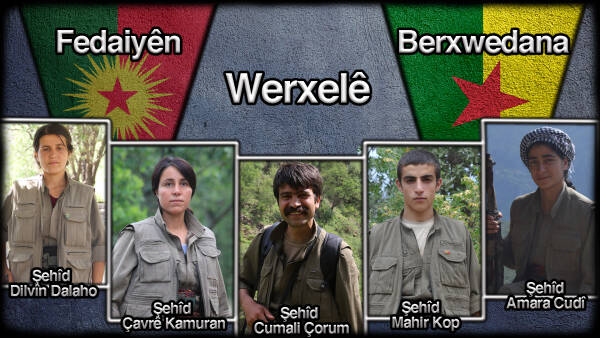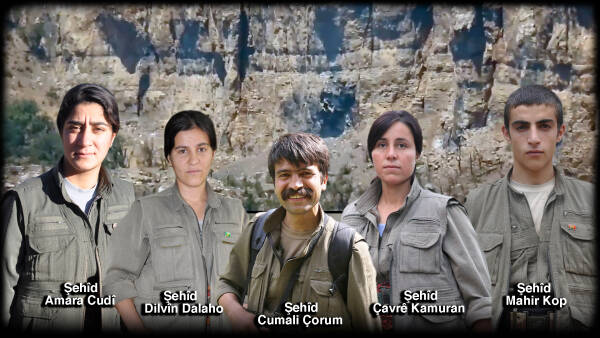 The Press Center of the People's Defense Forces (HPG-BIM) has released the identities of the five fighters who were killed in a chemical weapons attack by Turkey on October 5 at the Werxelê mountain range in the Avaşîn region of southern Kurdistan (northern Iraq). They are Cumali Çorum, Çavrê Kamuran, Dilvîn Dalaho, Amara Cûdî and Mahir Kop. The HPG paid tribute to their struggle and offered their condolences to all the bereaved families, and also announced retaliation.