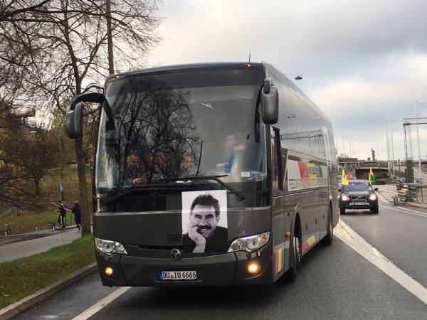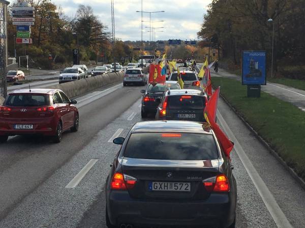 Some 30 km before reaching Stockholm, the Öcalan Library was greeted by a convoy of dozens of vehicles and toured the city for two hours before arriving in the rally grounds.