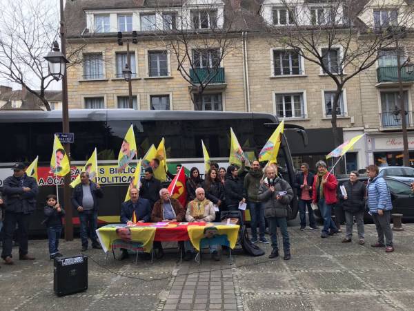 A stand was set up in front of the Mantes La Jolie Church where flyers and brochures promoting Öcalan’s ideas were disseminated, and a rally was held afterwards. Montes La Jolie city council members Marc Jammet and Nicole Bock gave speeches in the rally.