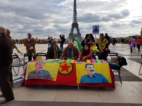 French people and tourists showed great interest in the stand in front of the Eiffel Tower. Activists distributed brochures and flyers about Öcalan.