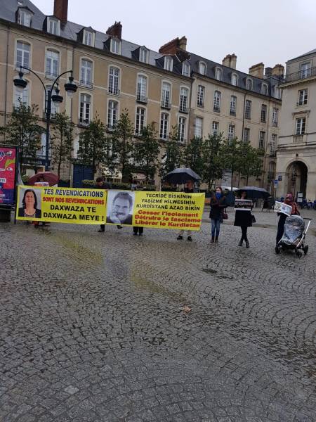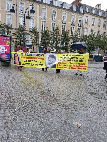 An action took place in the French city of Rennes, in front of the Town Hall Square. The protest demanding the end of isolation against Öcalan was organized by Zin Women's Association and Rennes Democratic Kurdish Community Center.
