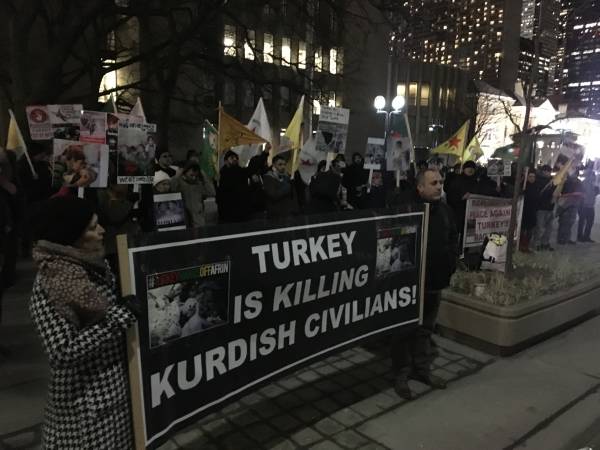 In Toronto, Canada, Kurds and internationalists blocked traffic. The Kurdish People's Council of Toronto said that the people of Afrin were facing a massacre and that they would now go on the streets permanently.
