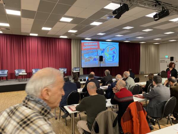 The programme began with a welcome by Hayko Bağdat, after which Prof. Neşe Özgen explained the rest of the proceedings. As a result of the two-day discussions, working groups will be formed, Özgen stated. On the first day, discussions will be held in three sections on "damage assessment", "ways out" and "building the future".