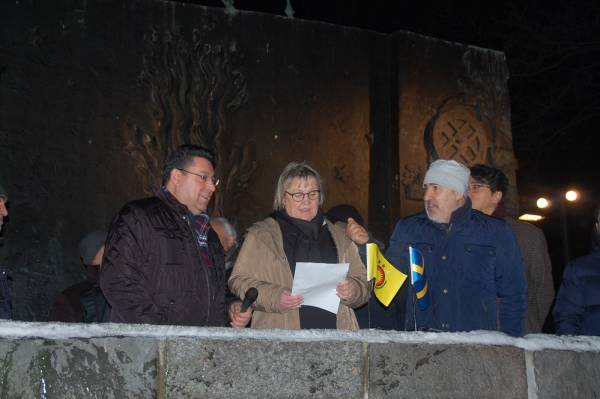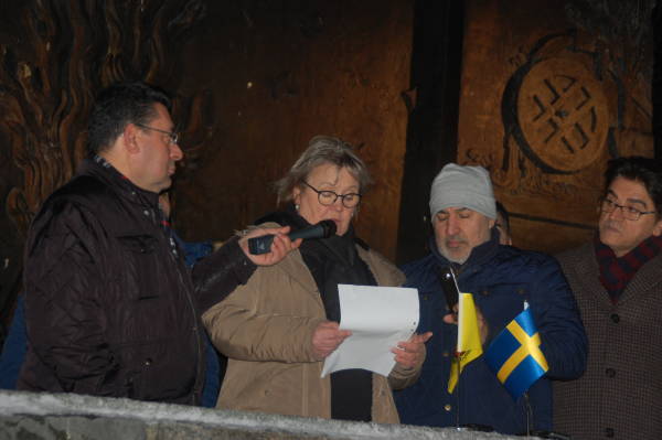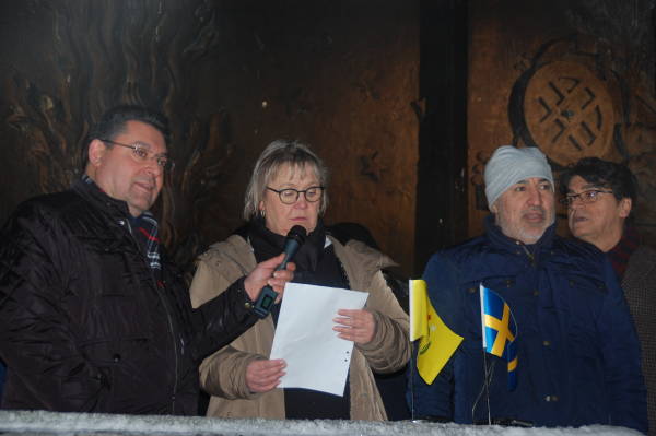 Olof Palme International Center, Solidarity Association with Kurdistan (SOL-KURD), Swedish Peace Council, Swedish Artists for Peace and anti-genocide human rights organization Kurdocide Watch CHAK signed the declaration which was read by former deputy mayor of Stockholm, Ann-Margarethe Livh.