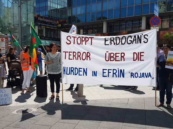 Protesters demanded an immediate end to the occupation of Afrin by the Turkish state and allied mercenaries.