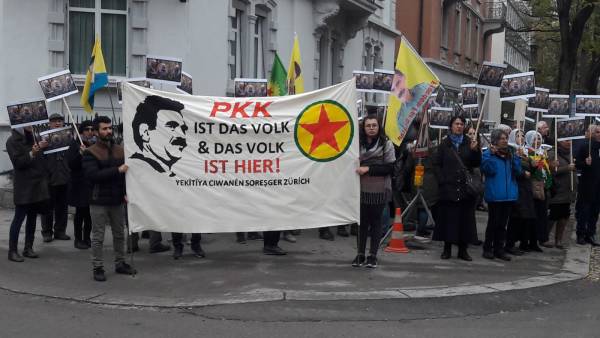 A demonstration to protest against the US decision to reward whoever provide information on the three PKK executives, was held in Bern.