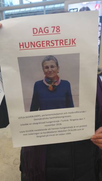 A meeting was promoted in Norra Bantorget Square in Stockholm. Kurds and their friends condemned the isolation imposed by the Turkish state on Öcalan and declared their support to hunger strikers.