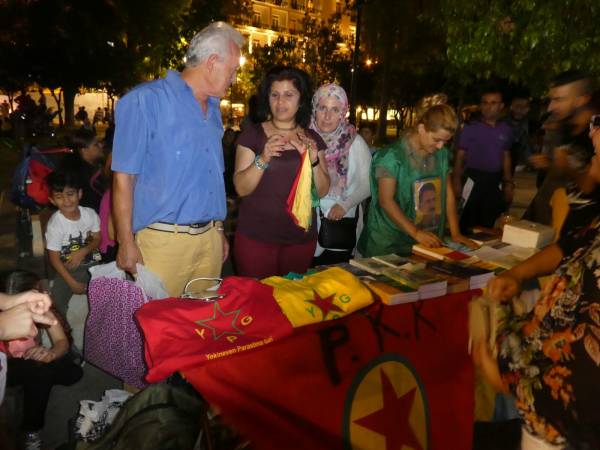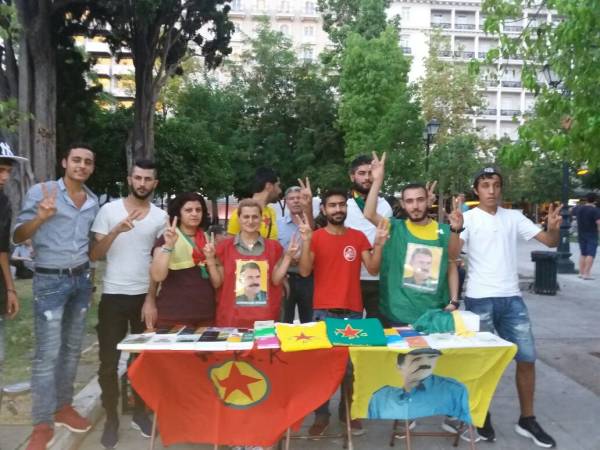 Kurds living in Greece set up an information stand for the 3rd day in a row in Syntagma Square of Athens, to express to the public the demand for the freedom of Kurdish people's leader Abdullah Öcalan.