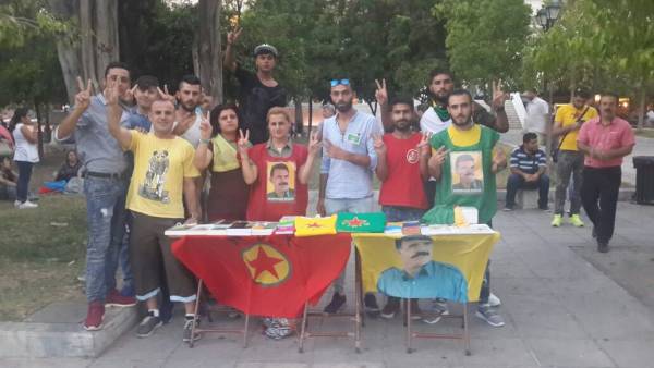 The activists handed out leaflets to the people watching the activity with interest. During the event, the activists distributed leaflets to the people informing of the current situation of the Kurdish leader.