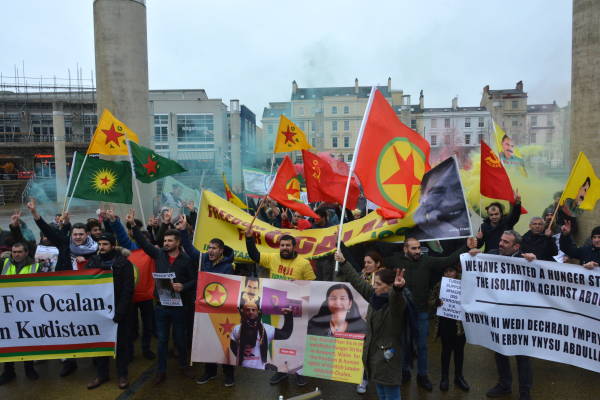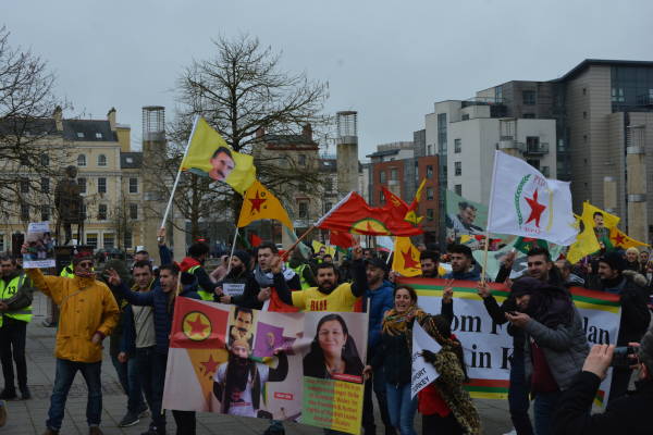 Hundreds of Kurds and their friends started a march in Cardiff center towards the city council. Demonstrator carried posters of Ocalan, hunger strikers and PKK flags. The demonstrators urged the international community to hear the voice of the Kurdish resistance.
