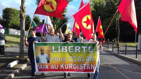 Kurdish youths living in Paris' Evry suburb joined a march organised by the Kurdish youth's movement Ciwanên Azad, and marched from the train station Grigne towards the Democratic Kurdish Society Center (NCDK), chanting "Long Live Leader Apo" and "Freedom for Öcalan".