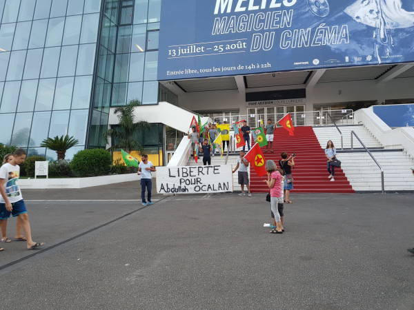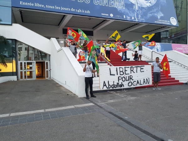 Within the scope of the 'Azad Bike' campaign, Draguignan-Ciwanên Azad members staged an activity in front of the film festival building in Cannes, and attracted the attention of many interested passing tourists, with chants of slogans, also raising PKK flags and banners demanding freedom for the Kurdish leader.