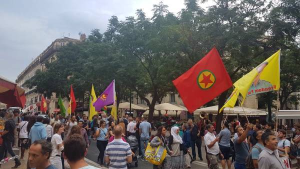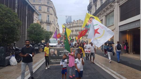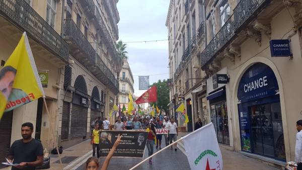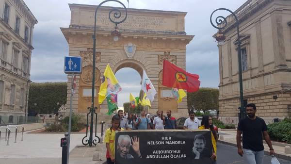 Following the call of Kurdish Democratic Society Center (NCDK) in Montpellier, people from Kurdistan gathered at the Peyrou Pitot Park and marched together to the Place de la Comédie, the Comedy Square located in the city centre, to demonstrate for the freedom of Kurdish people's leader Abdullah Öcalan.
