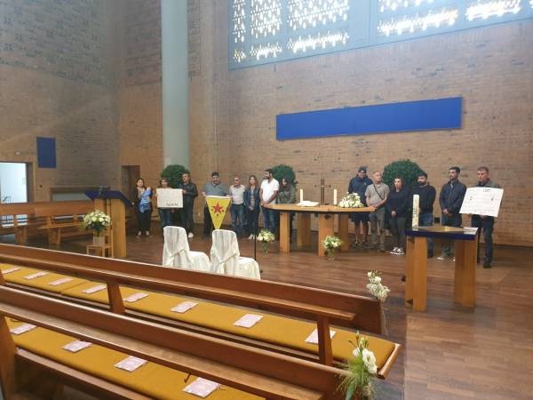 Kurds living in and around Kassel also commemorated the Yazidi killed in Shengal. Kurds were met by the priest of the Protestant church Markus.