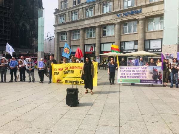 An action was also held in Cologne. Organized by the Viyan Women's Assembly in Cologne, the action began at 11 am.