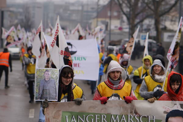 A long march from Heilbronn, Germany to Strasbourg, France started on Monday demanding “Freedom for Abdullah Öcalan, a Political Solution to the Kurdish Question”. Kurdish and internationalist activists are taking place in the march which will end on February 15.