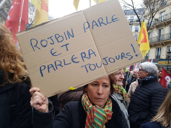 We have been following the Kurds for 20 years. We always side with them. I knew Rojbin very well. For 6 years we're marching demanding justice. We know the Turkish secret service is behind this massacre. But we want this to be revealed in an official way. The Court waited a long time, the suspect died in that time. France needs to play its role at this point in order to ensure justice. The police have enough information. What are they trying to hide? We will be here and everywhere siding with Kurds until the day when we finally get justice. On the other hand, I would like to point out that it is not normal to include 3 Kurdish leaders on the terrorist list.