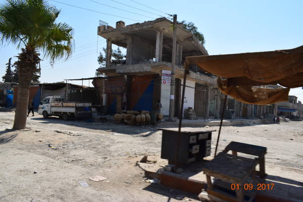 Tabqa opens up in front of us with its woody landscapes, huge hills and the dam that resembles a sea. Fighters of the Syrian Democratic Forces welcome us at the Asayish checkpoint. The traces of war are still fresh. As we approach the city, the traces show themselves not only on the buildings that were reduced to rubbles, but also on the faces of the people.