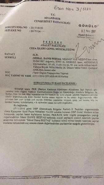 The summary of proceedings was prepared by acting Chief Public Prosecutor of Diyarbakır, Kurça Eker, who is known to have been appointed to deal with legal actions against deputies of the HDP.