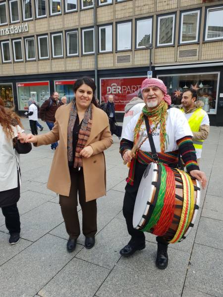 Hunger strike activist from Afrin, Walid Habes said he has been “with his friends” since 1983 and pointed out that he has known the PKK for decades. Habes is famous among Kurds in Germany with the drum he keeps on his shoulder.