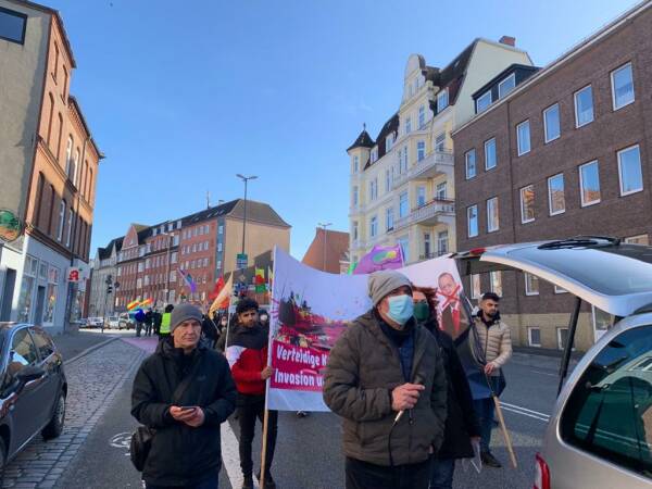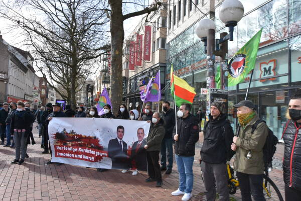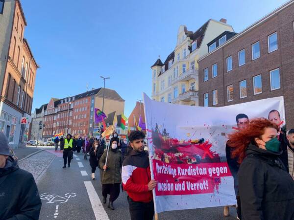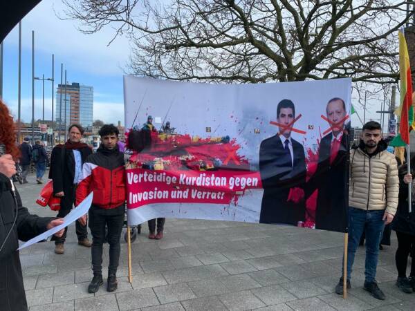 In Kiel, dozens of people met for a demonstration at the main train station. Erdogan's war policy and the KDP's collaboration were condemned in German and Kurdish speeches.