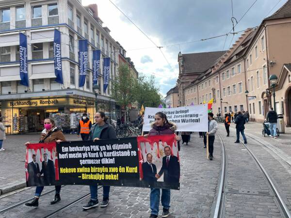 A demonstration took place in Freiburg, and ended with a rally on the square of the old synagogue. DKTM Chairman Salih Tori said in a speech: "In its history, the Turkish state has committed every form of attack in order to carry out genocide against the Kurds. These attacks continue and today are supported by the KDP and the Barzanî family, which claims to be the owners of Kurdistan. This family colludes with AKP/MHP fascism to kill Kurdish youth. We appeal to the KDP to give up treason and finally serve their own people.”