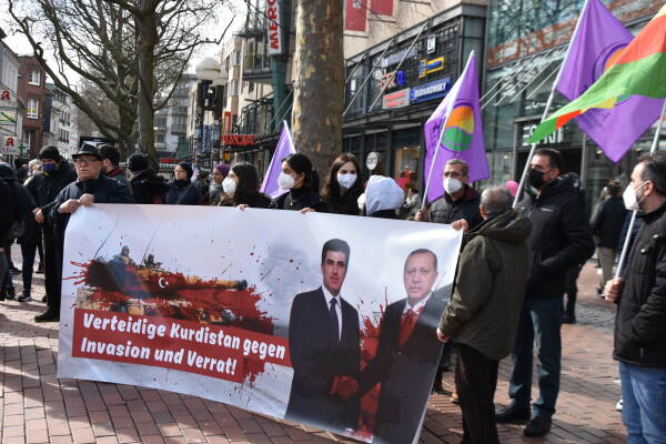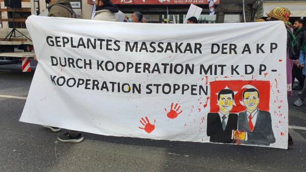The background to the protests is Turkey's renewed mobilization of troops for a war of aggression on Iraqi territory. The Erdogan government uses the presence of the guerrillas as an excuse. There are many indications that the KDP party, which is dominated by the Barzani clan, will directly participate in the operation with ground troops. Kurdish politicians, intellectuals and artists as well as a large part of the Kurdish population are opposed to this war and are demanding a peaceful solution.