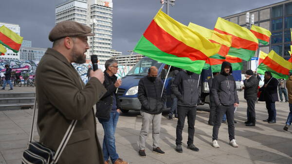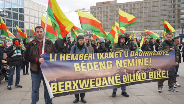 At a protest on Berlin's Alexanderplatz, historian and journalist Nick Brauns pointed out that Turkey, as a NATO member, is conducting cross-border military operations. NATO is silent on the aggressive war and the KDP supports it. Anyone who protests against it will be labeled as a terrorist. On the fringes of the action, signatures were collected for the campaign to decriminalize the Kurdish liberation movement.