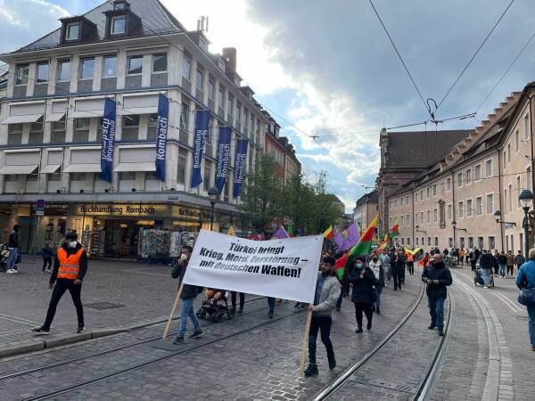 Many different groups took part in a protest against Turkey's war of aggression, which violated international law, on Lautenschlager Strasse in Stuttgart. Speakers said: “With the support of the NATO states and together with the Barzani clan, the NATO partner Turkey is planning an attack on the civilian population and the guerrillas in southern Kurdistan. We will not stand by and take our anger out onto the streets here in Stuttgart and in Europe.”