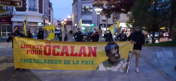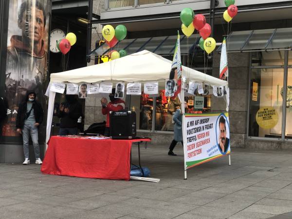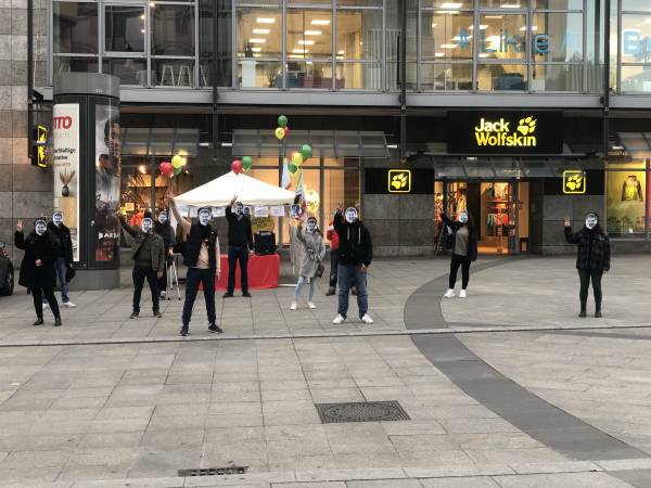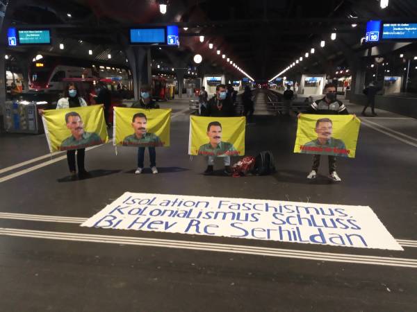 At the Rotebühlplatz Square in Stuttgart, the Kurdish youth movement held a demonstration in which the participants put on masks with the likeness of Öcalan over their faces and distributed leaflets on the topic. In addition, multilingual signs with the inscription "Freedom for Öcalan" were attached to balloons and let fly.