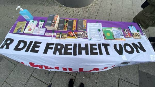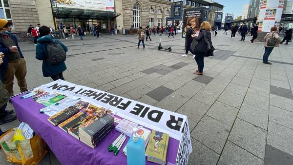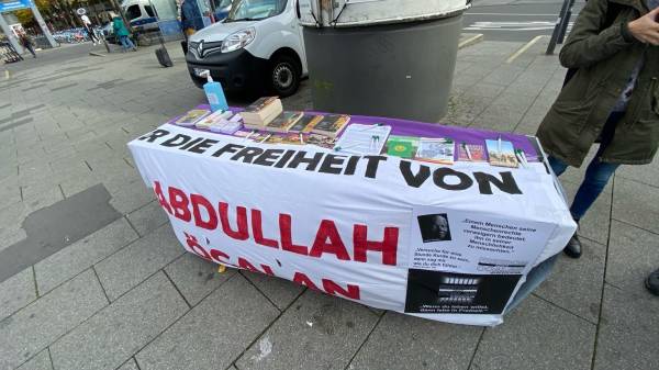 At Mannheim main station, the JXK and TCŞ opened a stand with books by Abdullah Öcalan and other information material and demanded an end to the isolation of the Kurdish leader. The passers-by showed interest in the information materials displayed on the stand as activists talked about the situation of Öcalan and the growing fascism in Turkey. The organizers emphasized that only the liberation of Öcalan can lead to the end of Turkish fascism, freedom for the Kurdish people and democratization in the Middle East.