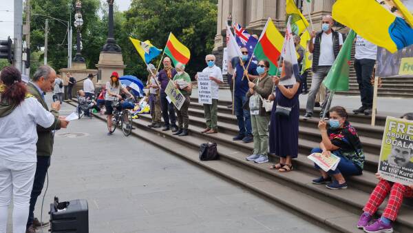 Kurds living in Melbourne, Australia staged a demonstration outside the Parliament of Victoria in protest at the international conspiracy that resulted in the abduction of Kurdish leader Abdullah Öcalan from Kenya to Turkey on 15 February 1999.