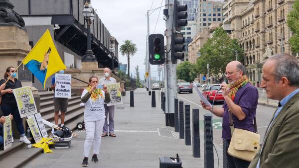 Kurds protest for Öcalan outside the Parliament of Victoria