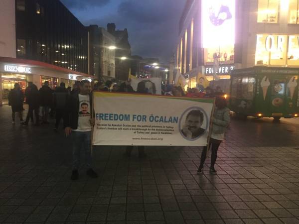 In Liverpool, the North West Kurdish People’s Assembly organized a demonstration. About hundred people protested in order to express their concern about Öcalan’s health conditions and in order to promote his freedom. They pointed out that Öcalan should be given the chance to meet with an independent delegation, and with his family and lawyers, saying; “We are worried about the health conditions of our leader. And we will continue until we hear from him.”