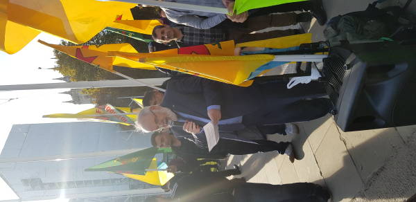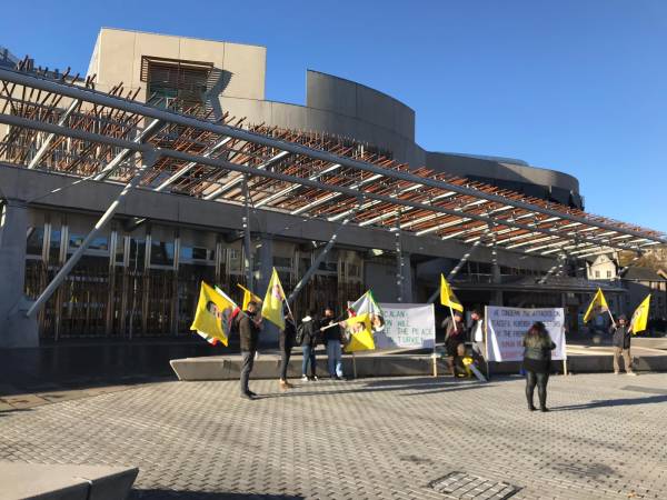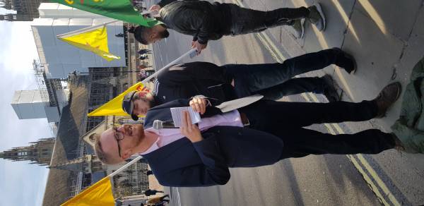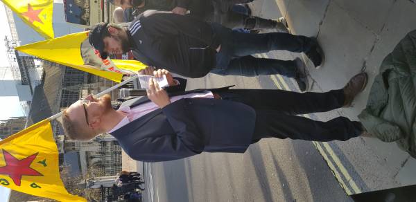 Labor Party Lloyd Moyle Russell MP, Scottish National Party Chris Williamson MP, Sinn Fein Francie Molloy MP, Lord Hilton, Reverend Joe Ryan and artist and politician Dirk Campbell (father of YPJ martyr Anna Campbell) joined the action.