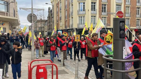 During today’s stage of the march, which ended at Place Arno, the activists read and distributed leaflets in French to passersby explaining the purpose of the 26-day Long March from Lorient to Strasbourg.