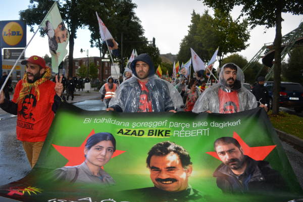 The youth’s movements organize the march from Dortmund to Cologne within the frame of the "Azad Bike" (Make Free) campaign under the motto "Smash colonialism with revolutionary revenge - Free the Leader".