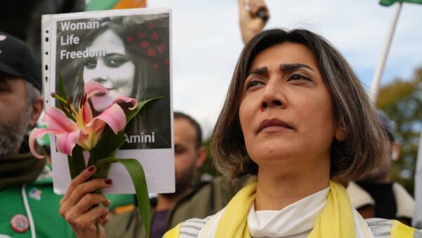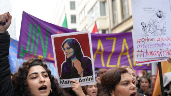 Protesters in Brussels condemned the Iranian state and called for freedom for women, different identities and communities.