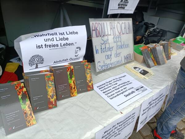 The Democratic Community Center in Nuremberg Medya Volkshaus welcomed the Mobile Öcalan Library with music and dance in downtown Nuremberg. A large selection of Öcalan's writings was available to the visitors on the book table.