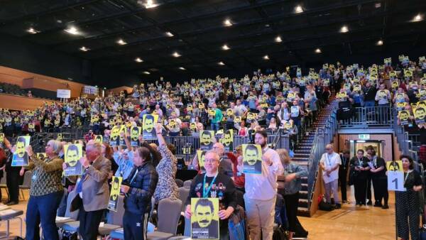 Thousands of education worker delegates stood up with “Freedom for Öcalan” posters at the union's congress held on Wednesday.