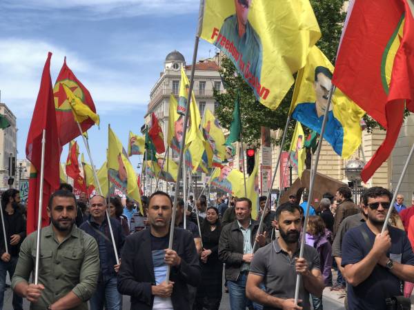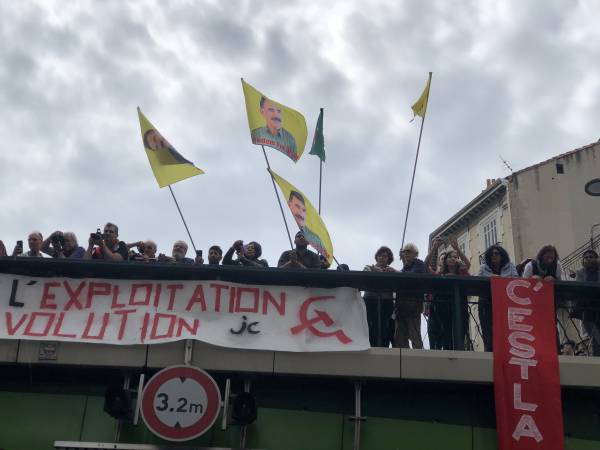 Thousands of people in Marseille, France, met at Vieux Port Square for Labor Day. The Kurdish people also joined the celebration bringing posters of the Kurdish People's Leader Abdullah Öcalan, and PKK, YPG / YPJ flags. A banner reminded that “Afrin is not alone". The walk ended in front of the governor's building.