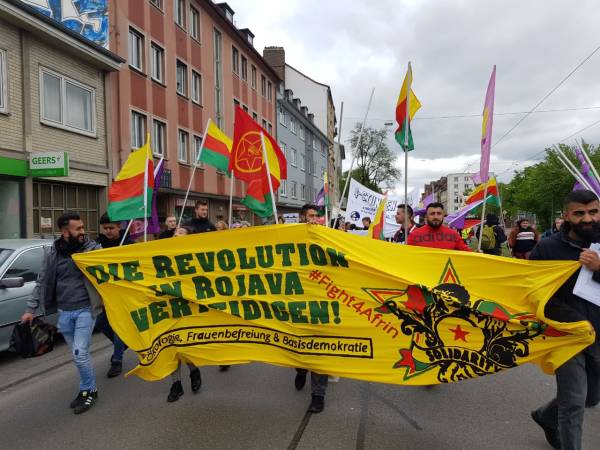 “Afrin is not alone” and “End Turkish occupation” among the slogans chanted on Workers’ Day in Europe.