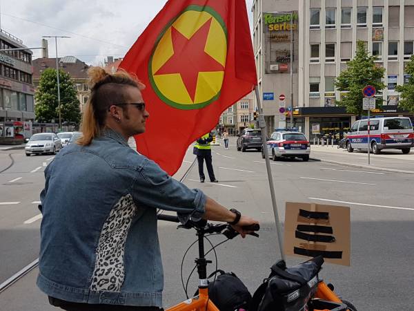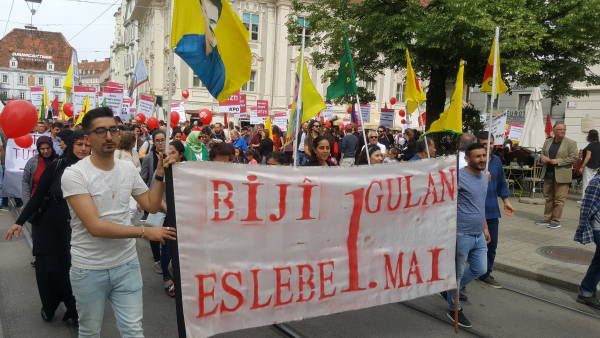 Kurdish people and Austrian friends came together in Südtirolerplatz in Graz, Austria, to celebrate Labor Day. The Kurdish people behind the DKTM banner marched to Eisenetor together with the representatives of left organizations, trade unions and LGBT.