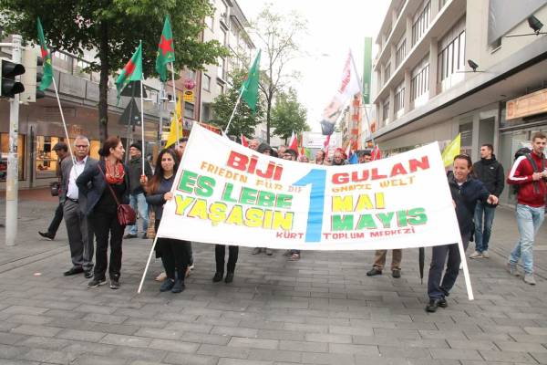 Thousands of people joined the Labor Day rally in Duisburg, Germany. In the celebration that started in Duisburg-Hamborn and continued up to Landschatspark, the German police kept under siege from the morning hours the DKTM area. The police also confiscated flags and banners prepared by Kurds. Despite this Kurds joined the rally.