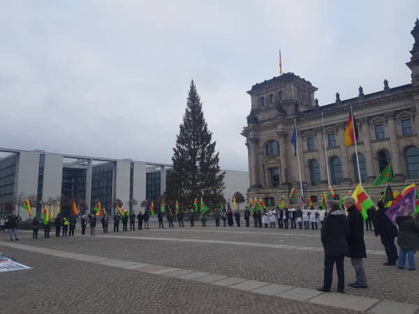 Speeches were delivered in German, Kurdish and Turkish to underline the isolation imposed on Kurdish People’s Leader, Abdullah Öcalan, and saluted the resistance of HDP Hakkari deputy Leyla Güven who has been on hunger strike for 36 days.