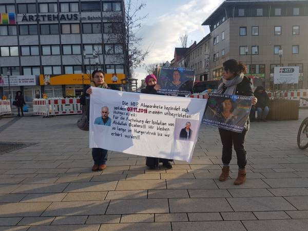 In Hildesheim, Germany, a group of women on behalf of the Martyr Meryem Commune promoted a solidarity action with HDP Hakkari MP Leyla Güven.