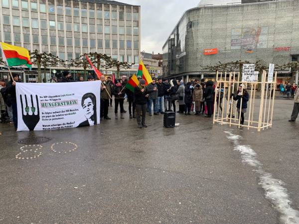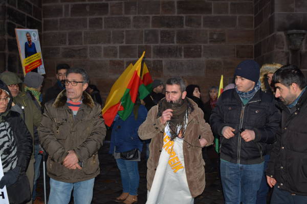 At a demonstration in Darmstadt, Kurdish politician Mustafa Sarıkaya delivered a speech on behalf of the hunger strikers in Strasbourg.