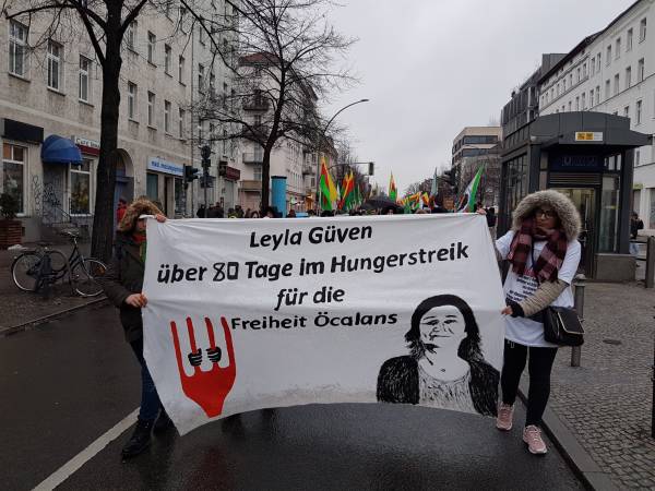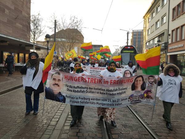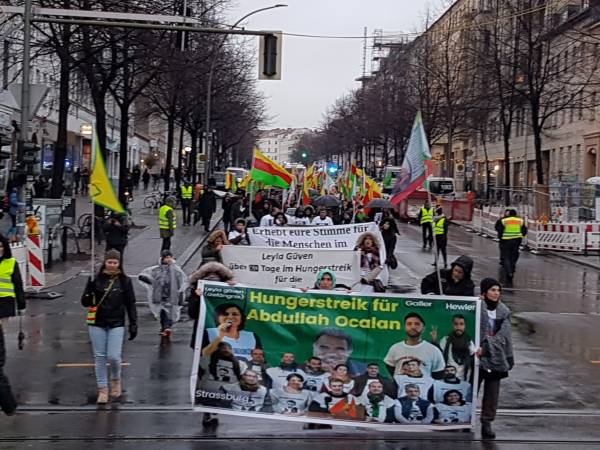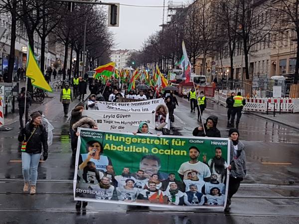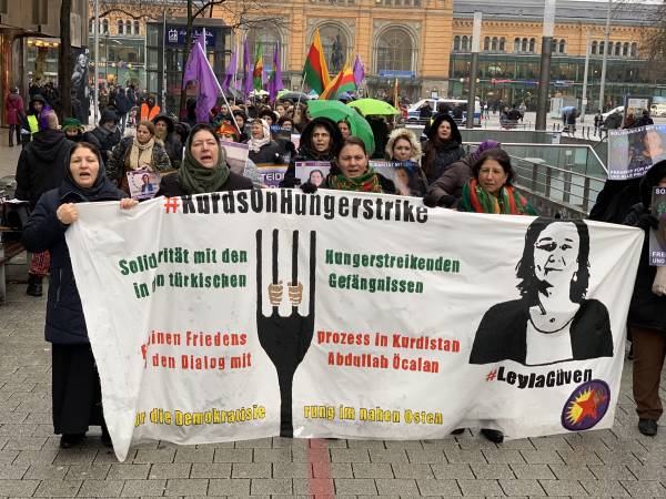 In Frankfurt, a demonstration of solidarity with a banner saying "Freedom for Öcalan, status for Kurdistan" took place.