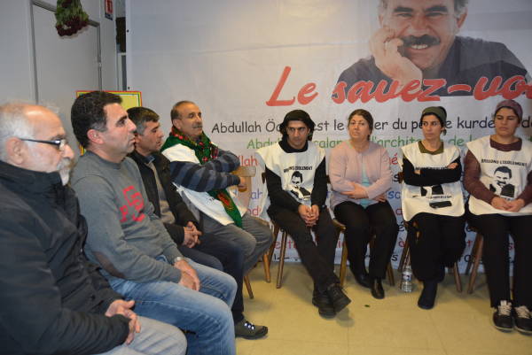 The hunger strike in Strasbourg city of France is carried out to demand the end of the isolation regime imposed on Kurdish People's Leader Abdullah Öcalan and in solidarity with the HDP Hakkari MP, Leyla Güven who has been on hunger strike for 55 days.